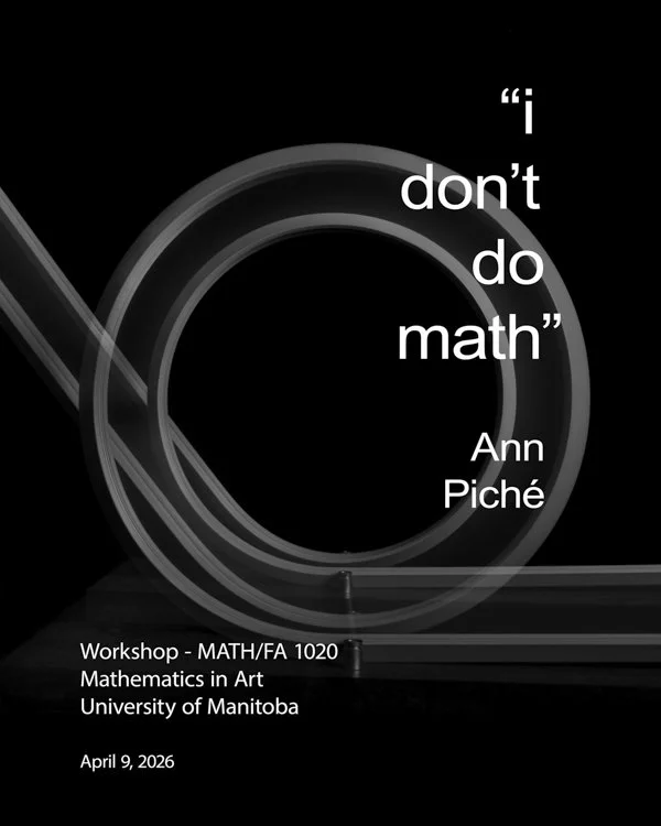 The exhibition and its satellite events are supported by New College|University of Toronto, ArtSci Salon, the Fields Institute for Research in Mathematical Sciences and the Jackman Humanities Institute|University of Toronto with collaboration from Departments of Mathematics at the University of Toronto and York University.